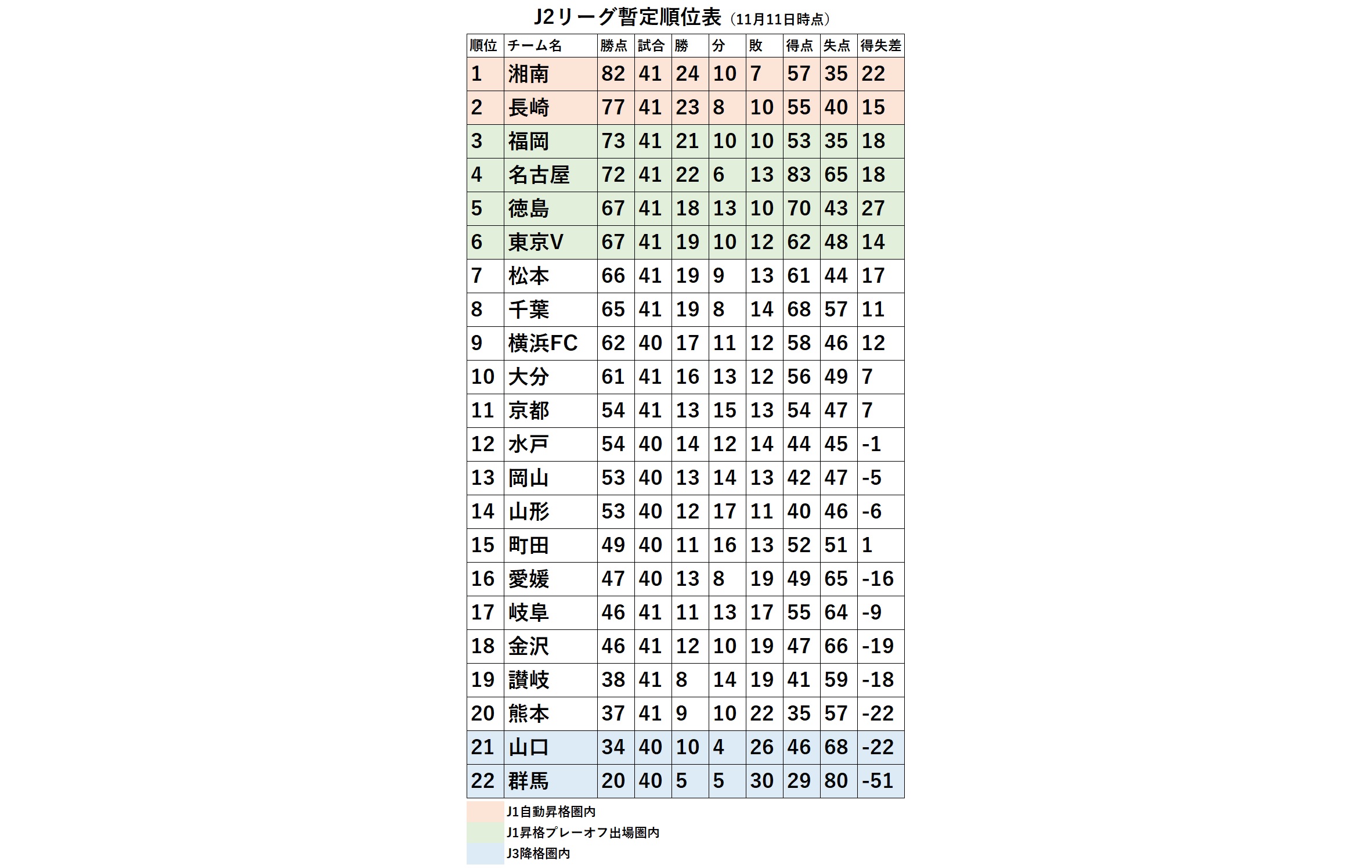 新潟は「ほぼ」降格決定 結果・順位推移J1 0 明治安田生命J1リーグは、 10月21日に第30節8試合、10月22日に1試合 が行われます。 今節の試合を含め、J11 サンフレッチェ広島 広島 74 34 23 5 6 73 30 43 218 21 09 2 ガンバ大阪 G大阪 63 34 18 9 7 56 37 19 185 16
